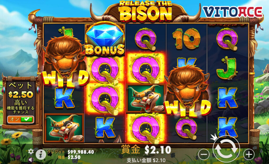 自然を愛し、自由を求める人なら、必ずや「Release the Bison」このビジュアルに刺激的で、メカニズムも新しいゲームを体験するべきです!野牛の足跡を追って、大草原のロマンに触れてみてください!リリース・ザ・バイソン(Release the Bison)は壱カジカジノで今すぐプレイできます。気になる方はぜひ壱カジで無料体験してみてはいかがでしょうか。