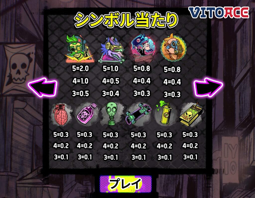 ドント・ヒット・プリーズ(Don’t Hit Plz)というこのスロットゲームは、世界が終わった後の世界を描いています。すべてがめちゃくちゃで、恐ろしくて、希望があまりありません。でも、少しだけ生き残った人々の中に、一線の光が残っています。プレイヤーはこの世界に入り込み、ストリートパンクのかんじと音楽を感じることができます。アウトローたちは、この終わりの世界を生き延びられるでしょうか。彼らの運命をドント・ヒット・プリーズ(Don’t Hit Plz)に賭けてみましょう。Don’t Hit Plzの登場シンボル