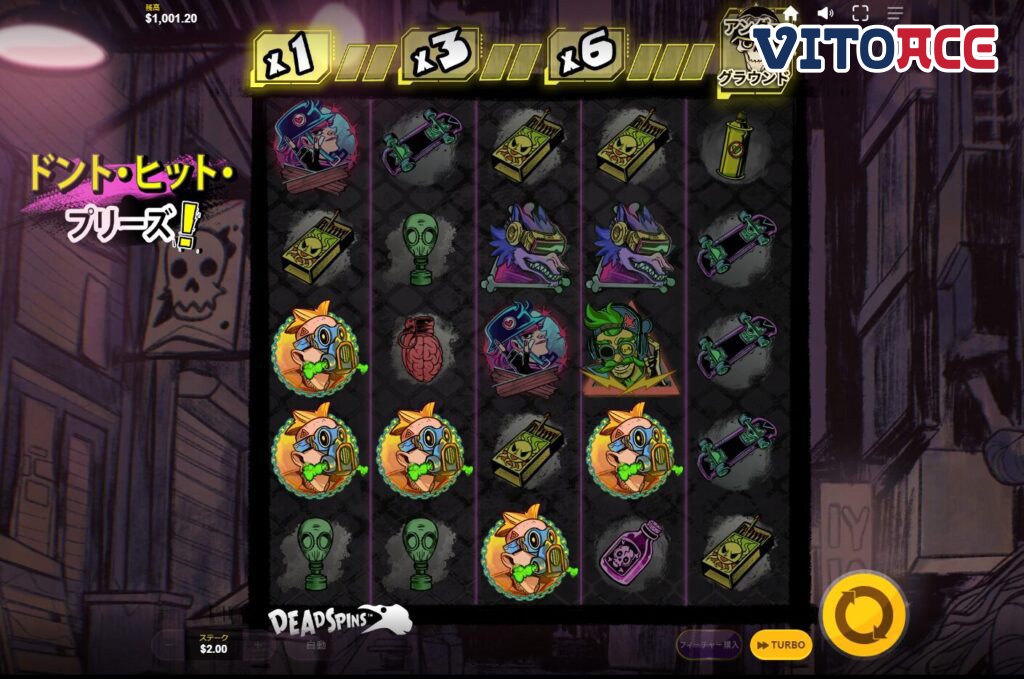 ドント・ヒット・プリーズ(Don’t Hit Plz)では、つながっているシンボルがない回転を「デッドスピン」と呼びます。連続するデッドスピンは「プログレスバー」を上げ、総合的な勝利倍率を上げます。1回のデッドスピンで、バーは+1段階上がります。当たりが出た回転でバーはリセットされます。- 3回連続デッドスピンでレベル2に到達し、3倍になります