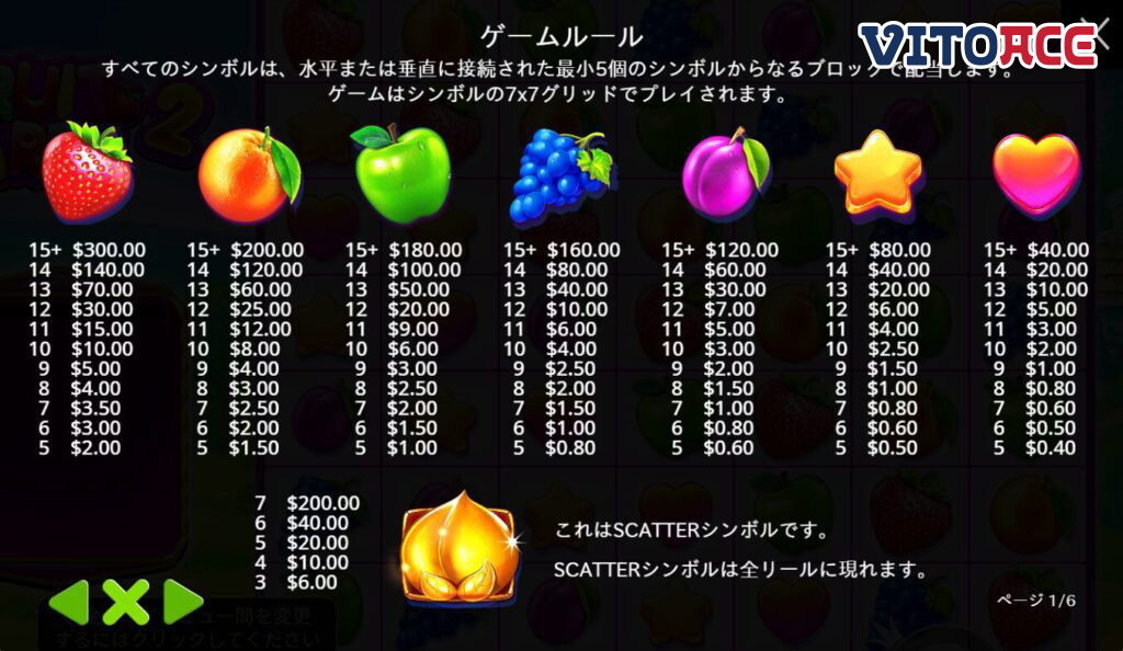 典型的なフルーツシンボルで牧歌的だけどノリがよく、いつの間にか体が揺れるほどクセになるサウンドが好印象!またのどかな雰囲気に騙されてはいけないランダムマルチプライヤーWILDはフリースピンこそその破壊力に驚愕することでしょう。ゲームシステム的にはベースゲームとフリーゲームとの差はそこまでないので初めてクラスターペイのオンラインカジノスロットを利用する人にもお勧めできますが、5000倍を上限にしなければいいのに!とは思ってしまいますねハイローラープレイヤーの方は、ぜひとも壱カジで挑戦してみましょう!