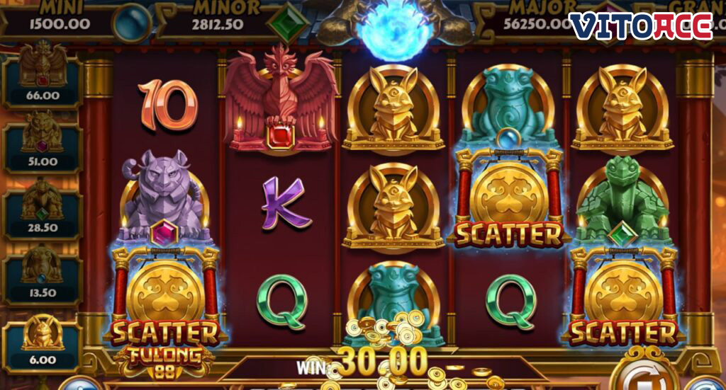 フーロン・88(Fulong 88)の特徴は、ワイルド シンボル、ゴールデン シンボル、フーロン コレクト、ボーナス ゲーム、フリー スピンです。