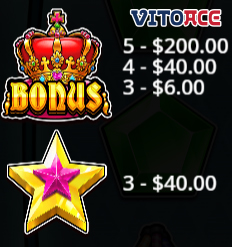Joker’s Jewels Wildの特徴は、星スキャッター シンボルと王冠スキャッター シンボルの2つです。星スキャッターは、左端、中央、右端のリールに表示され、そのうち の3 つが画面に現れると、プレイヤーは賭け金の 20 倍の賞金を獲得できます。王冠スキャッターはすべてのリールに表示され、3、4、または 5 つ表示されると、それぞれ賭け金の 3 倍、20 倍、または 100 倍が支払われます。