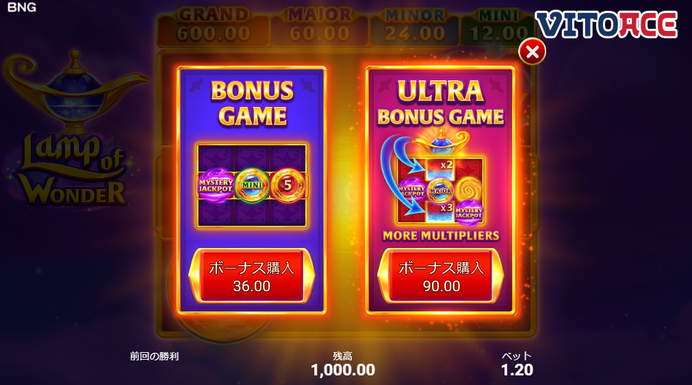 - 残高が不足していると、ボーナスゲームやウルトラボー ナスゲームはご購入できません
