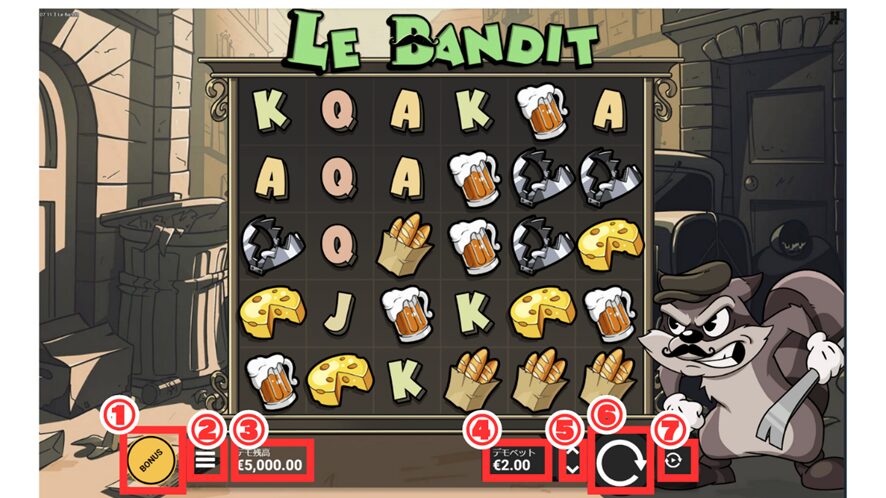 LE BANDITは、Hacksaw Gamingより2023年にリリースされたオンラインスロットです。 主人公のアライグマが、都会に眠るお宝を強奪するテーマにて作成されています!