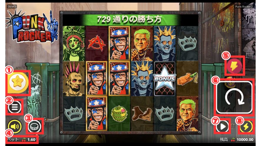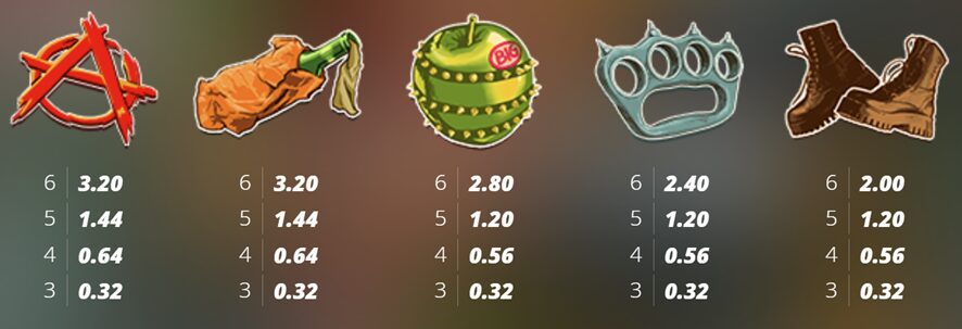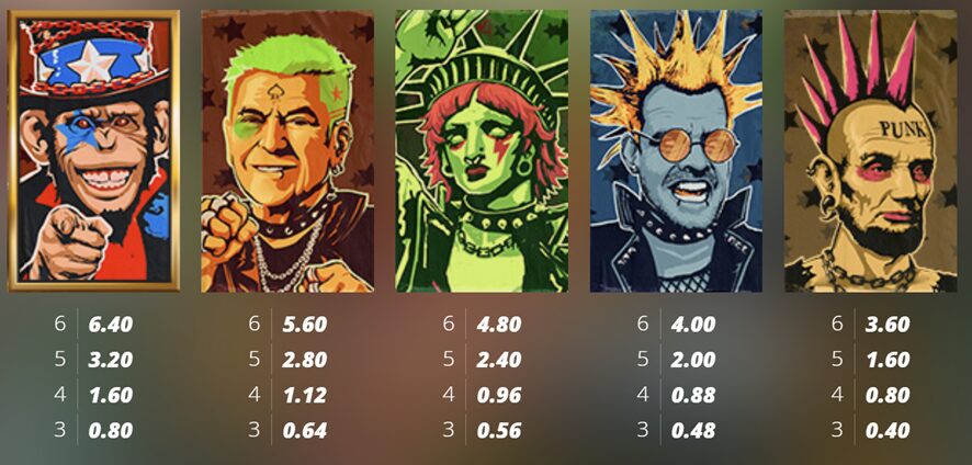 2024年7月Nolimit社よりリリースされたPunk Rocker2!パンクロッカーが戻ってきたぞ!前作Punk Rockerは、イギリスが舞台でしたが2ではニューヨークに舞台を移して登場です!ニューヨーク市民をパンクロック一緒に侵食していくぞ!前作に引き続き、超高ボラリティ機種になるため、ハイリスクハイリターンになるこの機種。ボーナスの購入も最上位FSの場合、ベット額の3000倍で購入することになるので…負ける覚悟もしつつ一撃を期待してチャレンジできるハイローラー向けの一台になります。配当表