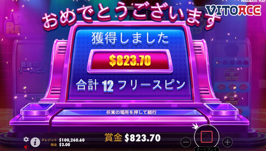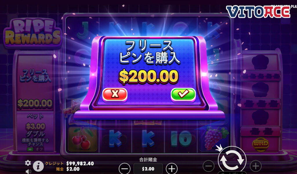 ボーナス購入機能がついています。購入するとすぐフリースピンモードに入ります。