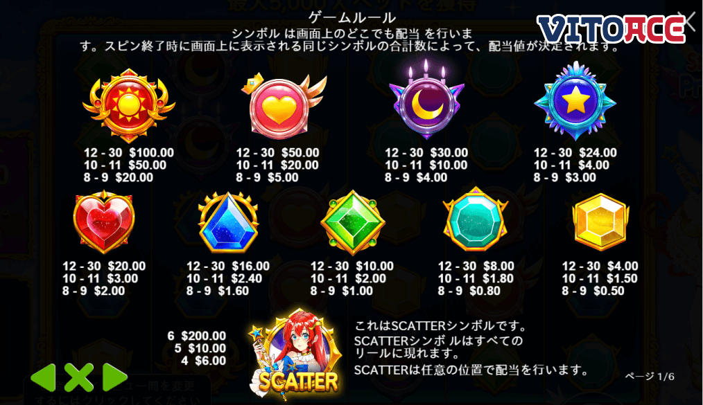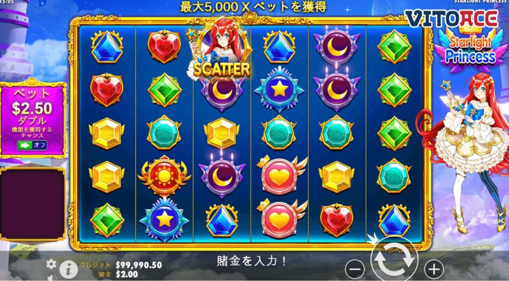 高配当を出すチャンスが多くあり、実際に何人ものプレイヤーが5,000倍を出しているのでスターライト・プリンセスは人気なのでしょう。初心者にもわかりやすいゲーム仕様ですし、連鎖で配当金が増えていく快感はビデオスロットでしか味わえません。まだ未プレイの方はぜひプレイしてみて、スターライト・プリンセスの爆発力を実感してください。スターライト・プリンセスは現在ヴィトエースカジノでプレイすることが可能です。今すぐプレイしたい方は、壱カジで無料でプレイしましょう!