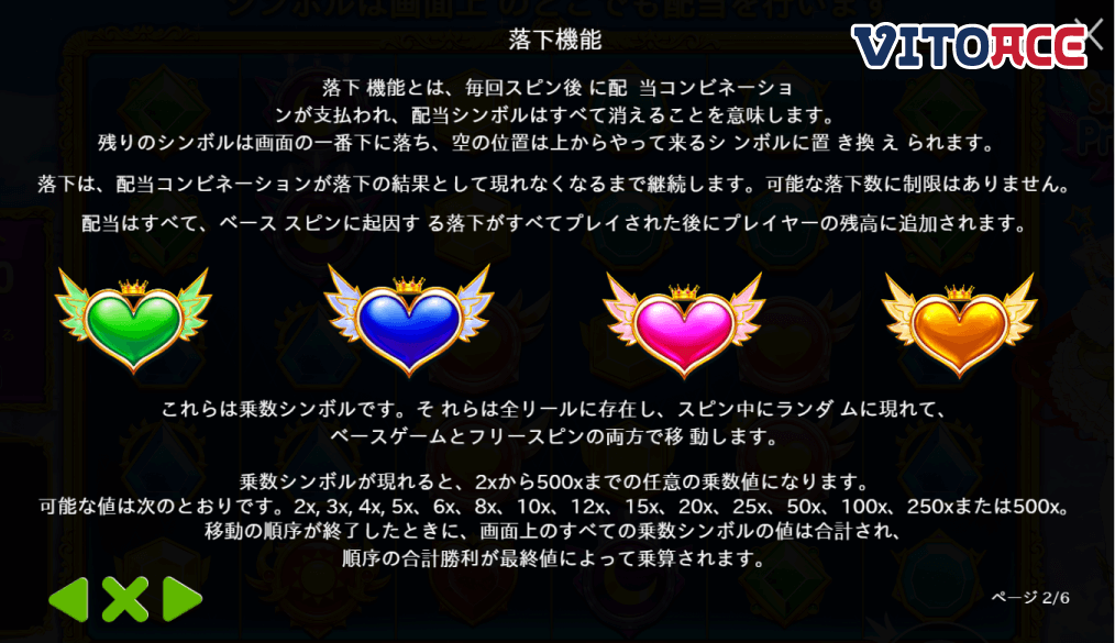 - ランダムで2~500倍の数値を所持したマルチプライヤーシンボルが出現する。