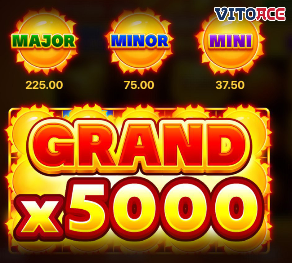 MINI-25倍、MINOR-50倍、MAYOR-150倍、さらに、ボーナスゲームで全体を埋めると、5,000倍のGRANDジャックポットをゲットできます!