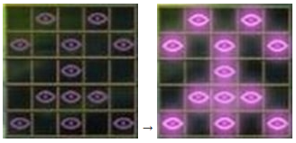 通常時に42個以上消すと突入するフリースピン!突入したあと、さらに高配当を目指すためにもう一段階乗り越えなければいけない壁があります!!それが、盤面に散りばめられた【目のシンボル】の位置で、配当を成立させる必要があります。
